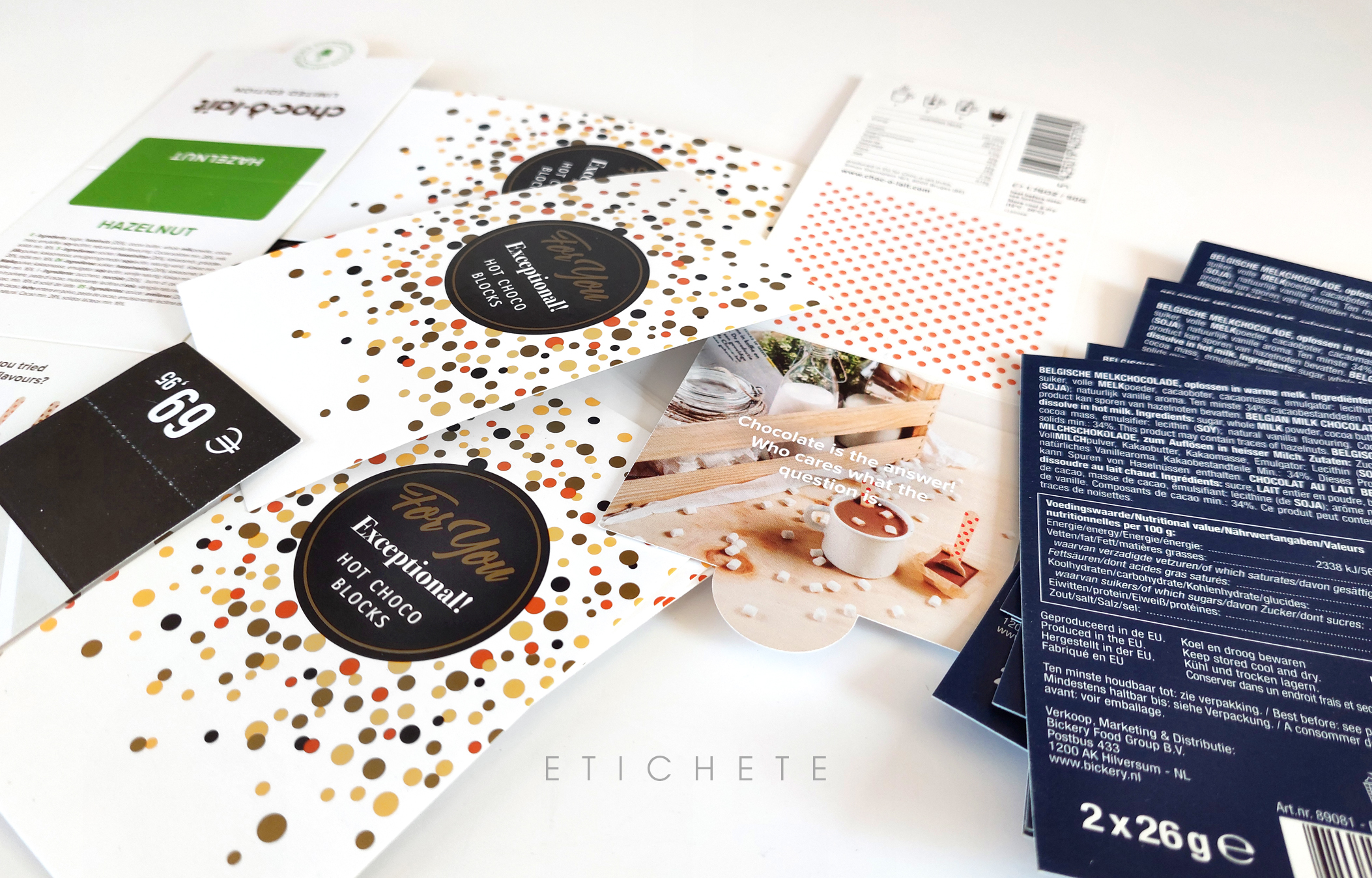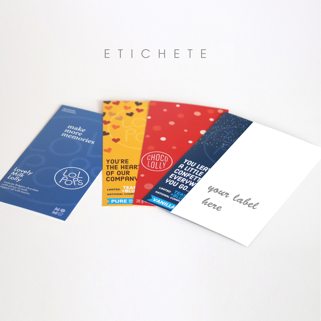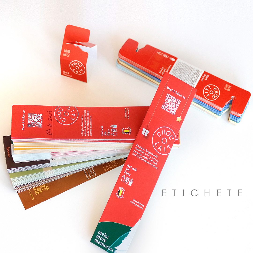 Etichetele sunt materiale imprimate aplicate pe produse pentru a oferi informații precum numele produsului, compoziția, instrucțiuni de utilizare, avertismente, etc. Ele pot fi din hârtie, carton sau autocolant și pot fi imprimate prin diverse metode. Câteva referințe din tipăriturile noastre: